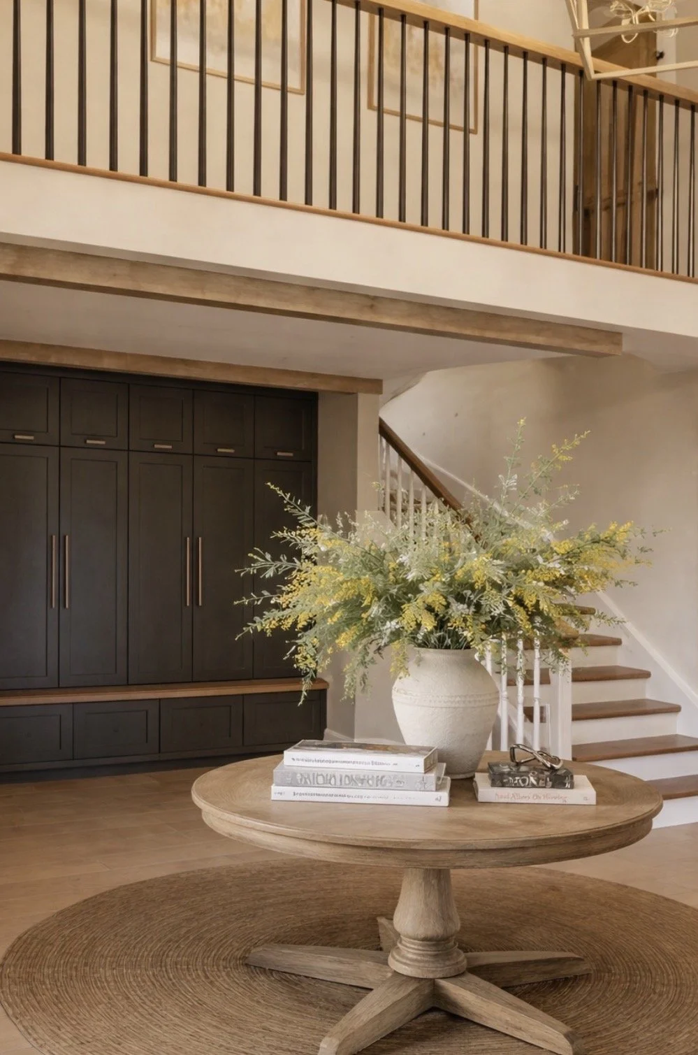 The Old Farmhouse, built over two centuries ago, is a home rich in history and character. When this rare gem came to the market, a prospective buyer approached Abney & Cove to review the space plans and reimagine the layout. Our proposals relocated the dining area closer to the kitchen, allowing space for a striking double-height entrance hall with a galleried landing space. A well-planned cloakroom, with bespoke floor-to-ceiling boot cupboards added practicality in the hallway, whilst an antique display table set the tone for a classic, heritage-inspired welcome. To the first floor, our proposal merged two smaller guest bedrooms into one large primary suite, with a feature stone headboard wall that concealed the access to a ‘secret’ en-suite with walk-in shower area and freestanding bath.