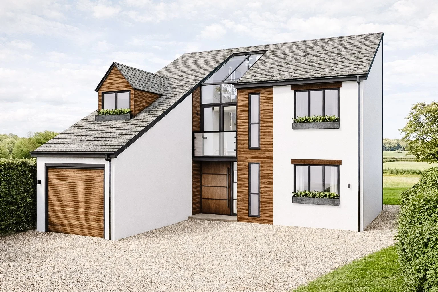 The Railway Cottage—a two-bedroom terrace originally commissioned by the London & North Western Railway Company around 1840—stands as a charming relic of Britain’s golden age of rail. Rich in period character, yet weathered by decades of neglect, it had fallen far from its former glory. In 2021, Abney & Cove were asked to assist with visuals for a full refurbishment programme. The project began with the creation of a dual level primary bedroom, incorporating a mezzanine en-suite. Visuals for the entrance hallway, kitchen and parlour room followed, breathing new life and style into this characterful cottage.